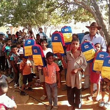 Niños y jóvenes del municipio Infante, fueron beneficiados con útiles escolares por parte del productor agropecuario Wolfgang Camero, directivo de (SOGGUA).